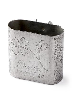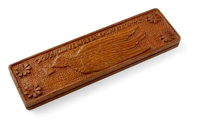 Pièce de bois travaillée, portant la mention "1939-1940 : souvenir de captivité"