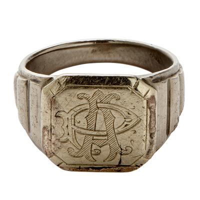 Chevalière en métal blanc confectionnée par Pierre Aurelle