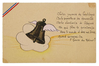 Dessin aquarellé d'un message d'espérance, illustré d'une cloche, pour fêter Pâques