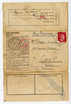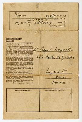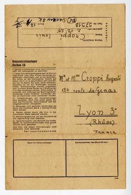 Lettre d'André Péru adressée à sa famille depuis le camp de Dachau