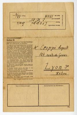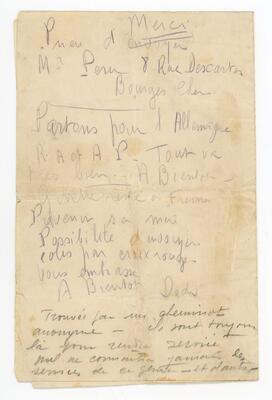 Billet rédigé par Jacques Choimet à l'attention de ses parents et jeté du train qui le mène vers l'Allemagne