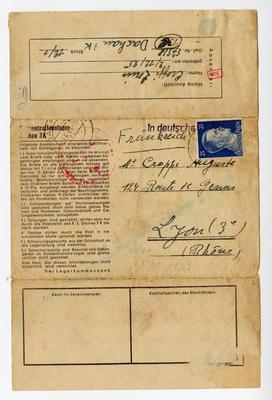 Lettre jetée du train par André Péru, postée par un cheminot à sa famille