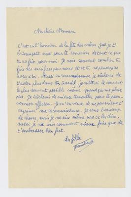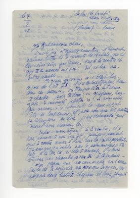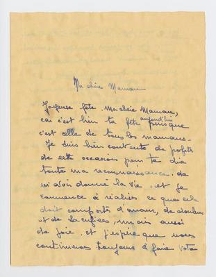 Lettre de Dominique "Poupée", écrite depuis Paris, 10 novembre 1945 (1/2)