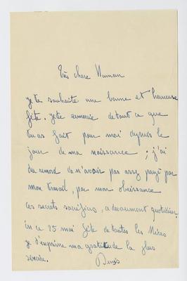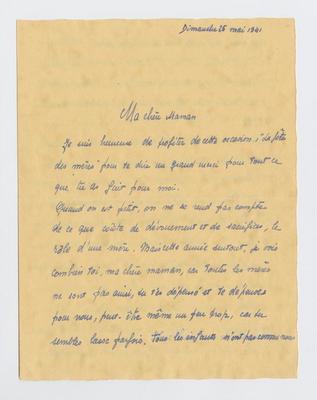 Lettre manuscrite écrite par Roger Lévy à son épouse