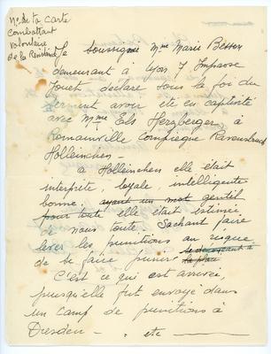 Modèle d’attestation destiné à Els Herzberger Huber que rédige Monique Hérady à l’intention de Marie-Fortunée Besson