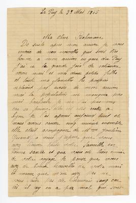 Lettre d’Yvonne à « Ma chère Bohémienne », écrite depuis Le Puy, 22 mai 1945