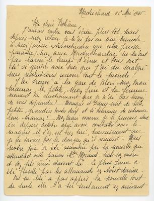 Lettre de H ? à « Ma chère Bohème », écrite depuis Montrichard, 26 mai 1945 (1/3)