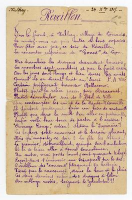 Poème manuscrit "Réveillon" rédigé du front en Lorraine et dédicacé à Roger Lévy (1/2)